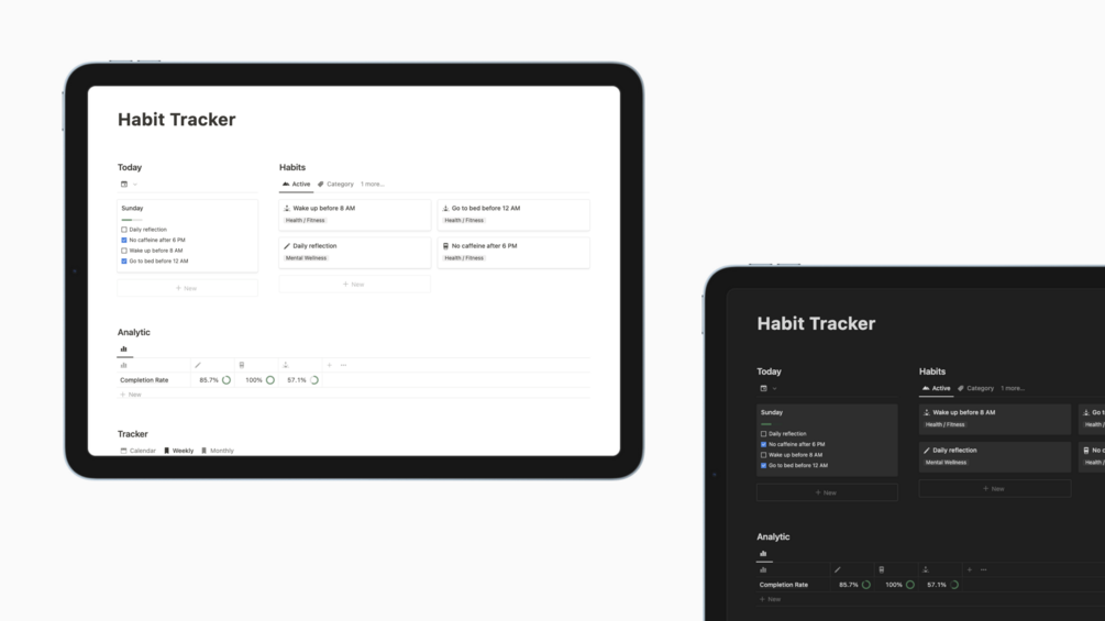 Whether you are trying to wake up earlier, exercise more regularly, or maintain your mental well-being by journaling every day, this minimalist Notion template can help you keep yourself accountable by allowing you to log your daily habits.